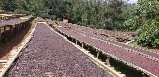 Coffees in Ethiopia are typically grown on very small plots of land by farmers who also grow other crops. The majority of smallholders will deliver their coffee in cherry to a nearby washing station or central processing unit, where their coffee will be sorted, weighed, and paid for or given a receipt. Coffee is then processed, usually washed or natural, by the washing station and dried on raised beds.